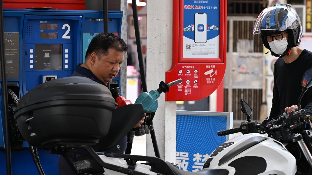 HONG KONG: A pump attendant (L) fills up a motorcycle at a petrol station in Hong Kong on March 25, 2026. (Photo by AFP)